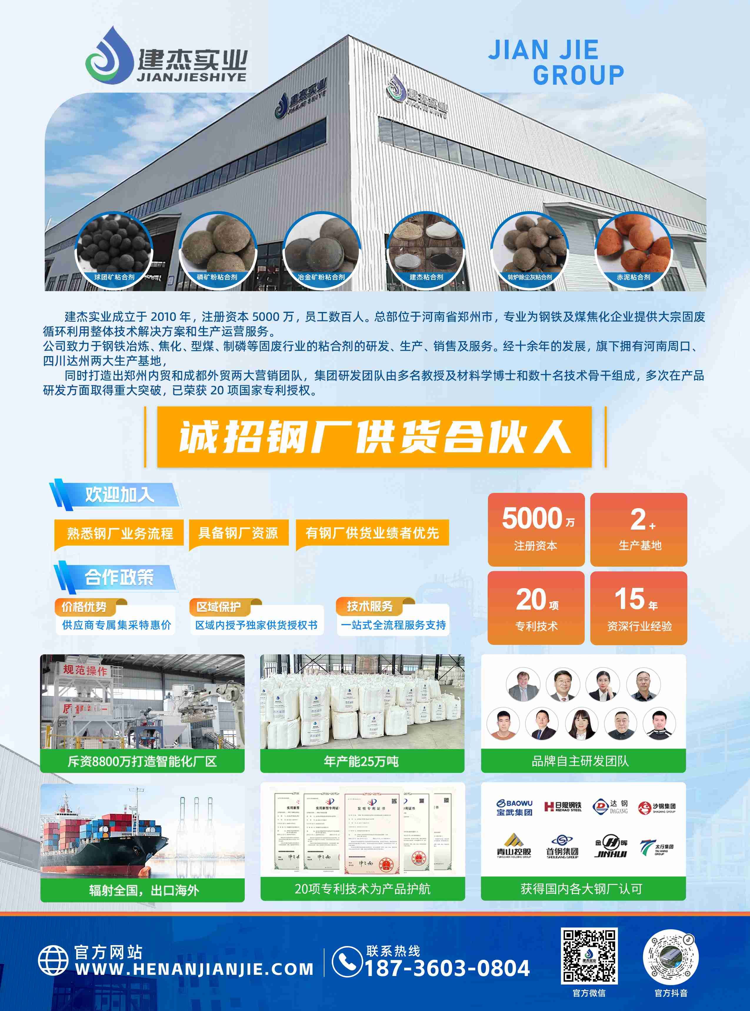 建杰實業(yè)成立于2010年,注冊資本5000萬,員工數(shù)百人。總部位于河南省鄭州市,專業(yè)為鋼鐵及煤焦化企業(yè)提供大宗固廢循環(huán)利用整體技術(shù)解決方案和生產(chǎn)運(yùn)營服務(wù)。